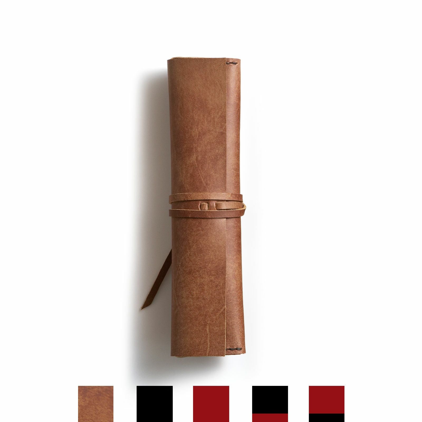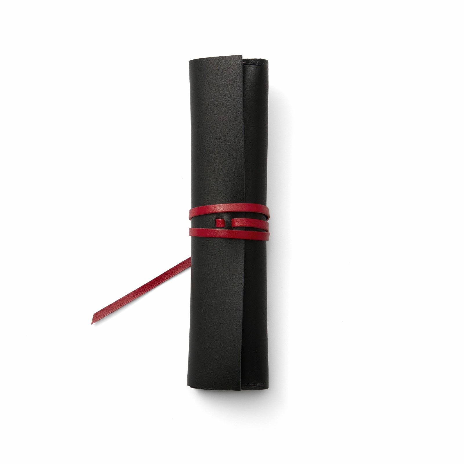 紐巻きペンケースの元祖的製品。昔の日本には、くるくると紐で巻き懐中に入れる習慣があり、心落ち着く所作だから不思議です。